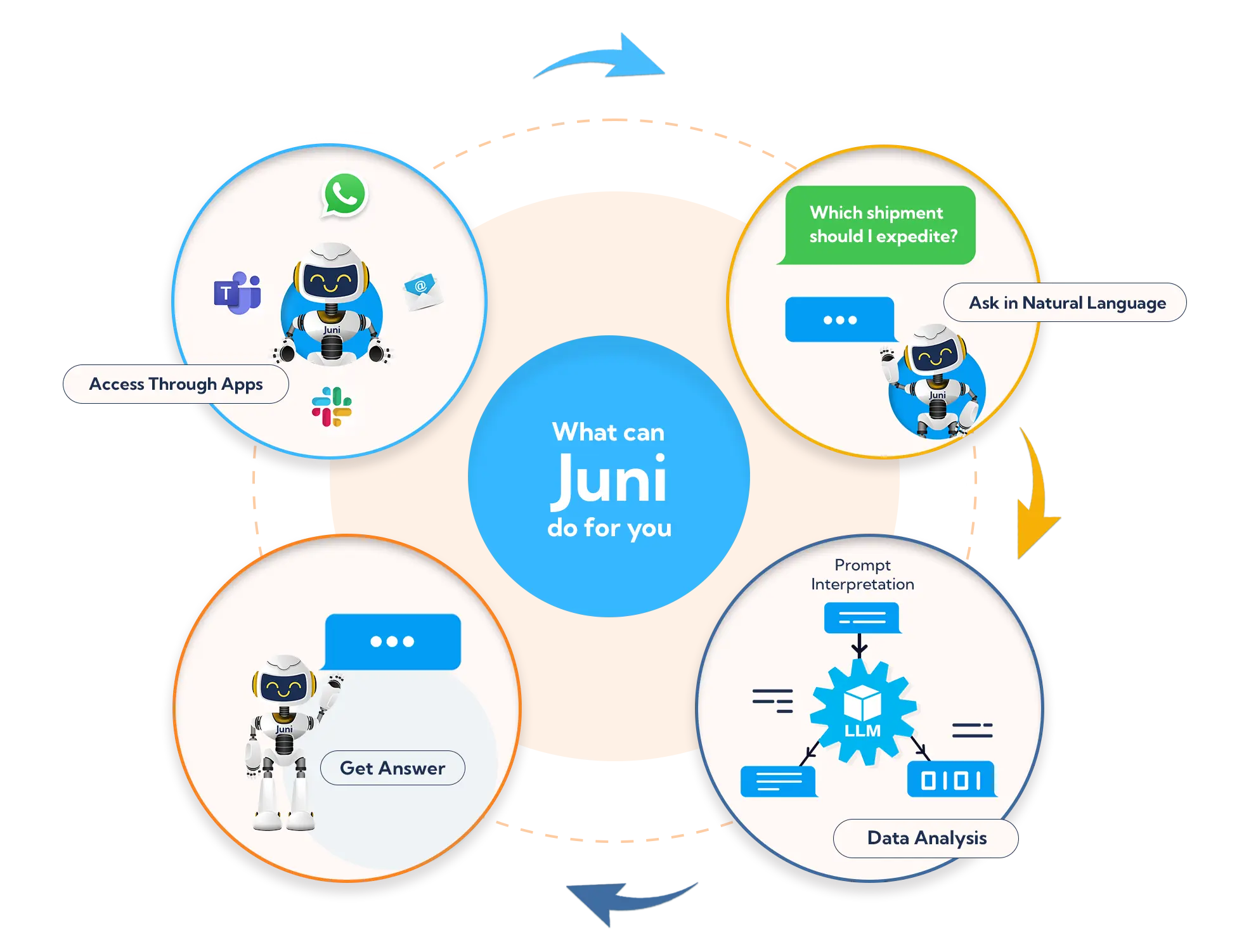 Juni is an AI assistant that helps you make sense of the large volumes of operational data. With its Generative AI capabilities, Juni understands what you need and gives you insightful answers to business questions.