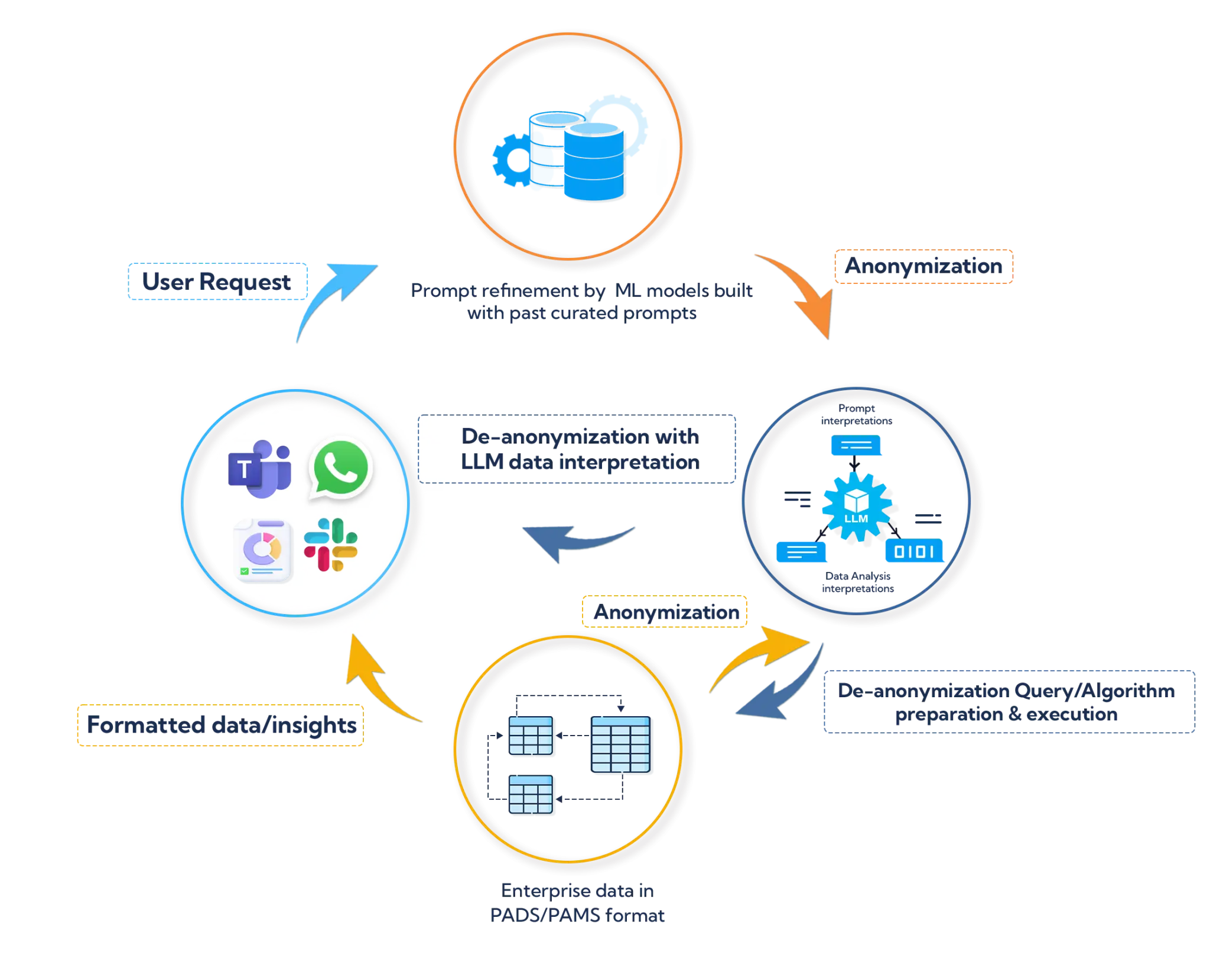 The more you use Juni, the more it learns, and the more reliable it becomes. This is possible because OpsVeda anonymizes and logs everything that Juni is asked. At the same time, OpsVeda’s algorithms and data stewards review the questions along with Juni's answers to refine them. This curated history becomes the repository for Juni's training and makes its analysis and answers better over time. Anonymization as well as encryption while invoking Large Language Models ensures data security.